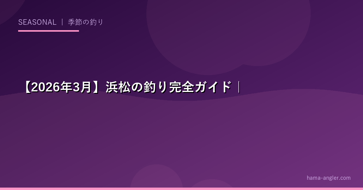 この記事では、2026年3月の浜松エリアで狙うべき魚種・ポイント・タックルを丸ごとお届けします。