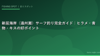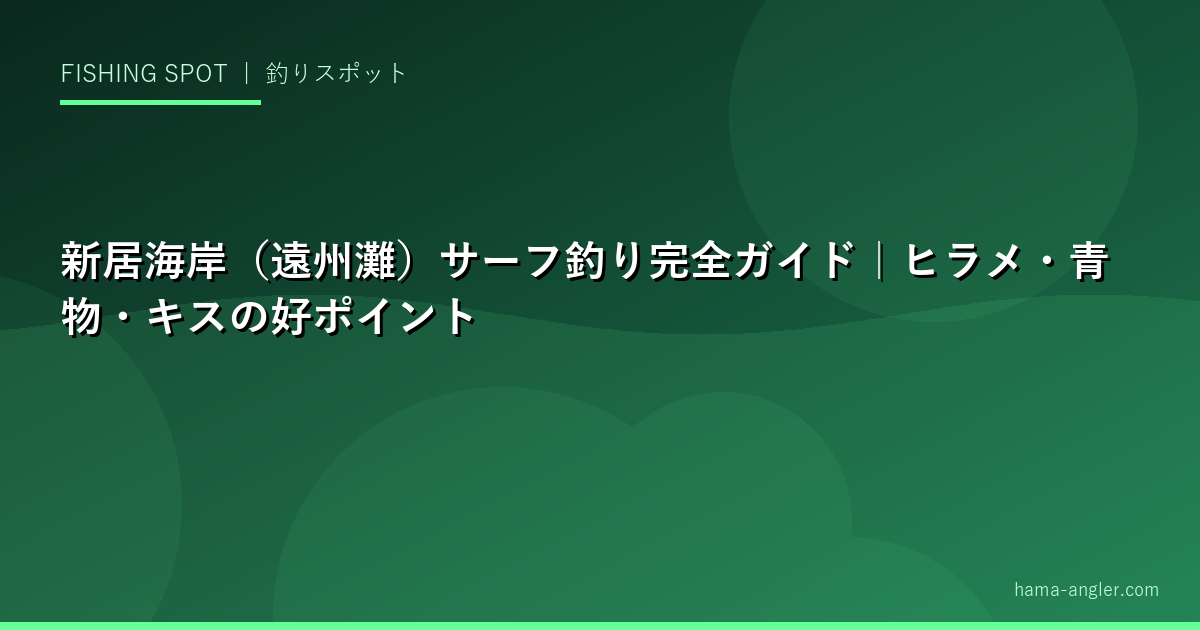 新居海岸は浜名湖の今切口に隣接し、遠州灘に面した広大なサーフフィールドです。ヒラメ・マゴチ・キス・青物と多彩なターゲットが狙え、サーフフィッシングの聖地として全国から釣り人が訪れます。本記事では新居海岸の特徴から各ポイント、季節別の攻略法まで完全ガイドします。