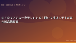 アジの一夜干しは「開いて漬けて干す」だけの簡単レシピで、釣りたてのアジが絶品の保存食に変わります。サビキで大漁した日は刺身やフライと合わせて一夜干しにすると、翌日以降も釣りの恵みを楽しめます。冷凍保存しておけばいつでも焼きたてが食べられるので、ぜひお試しください。