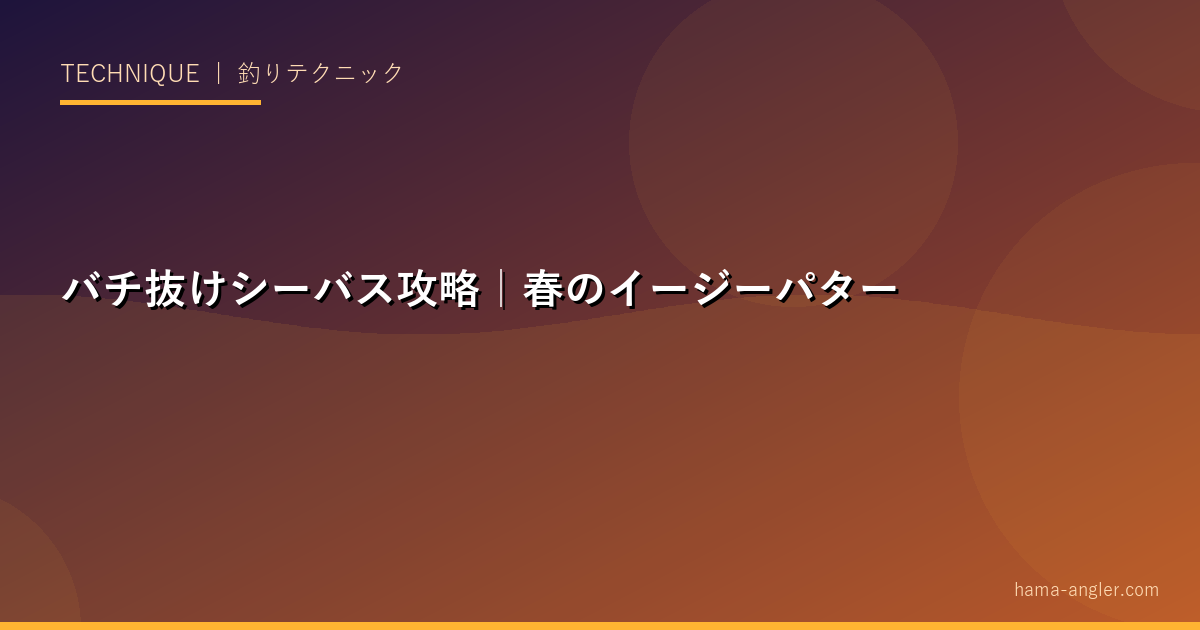 バチ抜けパターンはシーバスフィッシングの中で最もイージーに釣れるチャンスタイムです。シンキングペンシルをデッドスローで引くだけの簡単な釣りで、数釣りも大型も狙えます。春の大潮の夜、浜名湖の水面にバチが泳ぎ始めたらシーバスとの出会いはすぐそこです。