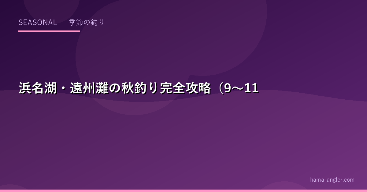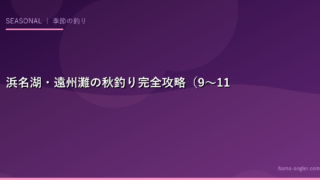 秋(9〜11月)は浜名湖・遠州灘において最も釣り物が豊富な「黄金シーズン」です。夏の水温が少しずつ下がり、青物(ブリ系・ソウダガツオ)・タチウオ・アオリイカの新子・ヒラメが次々とシーズンインします。2026年秋に向けた各ターゲットの特徴・ポイント・タックル攻略法をまとめます。