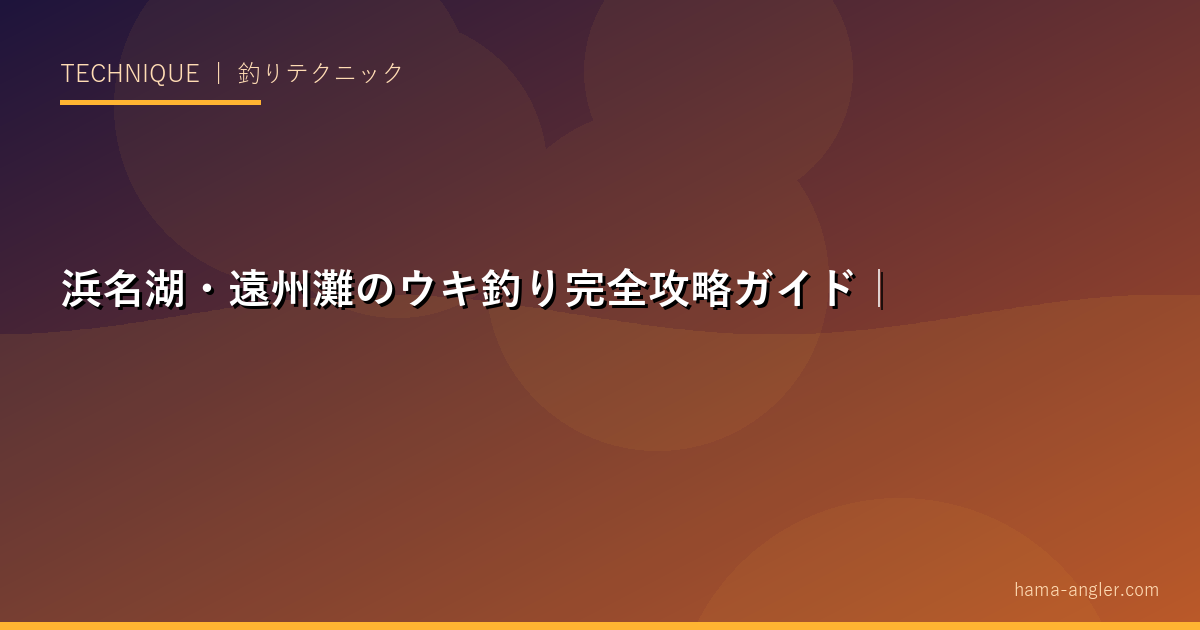 ウキ釣りは釣りの基本にして奥が深い釣り方です。浮きが水面でスッと沈む瞬間の緊張感——これを一度知った釣り人は、ウキ釣りの虜になります。浜名湖・遠州灘では、チヌ・メバル・アジ・クロ(グレ)など様々なターゲットをウキ釣りで狙うことができます。このページでは、浜名湖エリアのウキ釣り技術を基本から応用まで完全解説します。